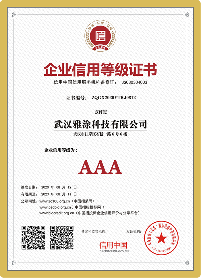 雅涂擁有20000㎡研發生產基地和500㎡營銷中心,公司核心技術自主研發而成,已申請多個技術專利, 并通過ISO9001質量體系、ISO14001環境體系雙認證