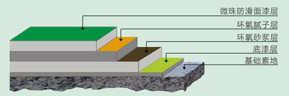 微珠防滑型地坪主要成份為二氧化硅和氧化鋁,其硬度達(dá)到莫氏5-7度。由于陶瓷微珠顆粒所形成大量微珠表面,使其有比較好的硬度和防滑效果。微珠防滑型地坪施工工藝簡單,只需要滾刷一遍即可,固化后形成高度防滑耐磨地坪,該地坪適用于經(jīng)常有水、廚房、飯?zhí)?、車庫坡道及廠房地面要求防滑區(qū)域。